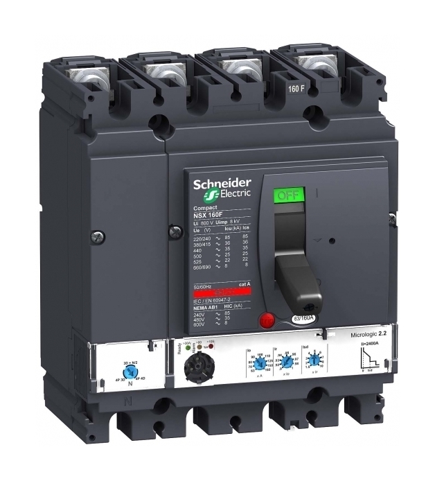 LV430786 Автоматический выключатель ComPact NSX160N, исполнение – 4P 3d, 4d, 3d + N/2; номинальный ток 100 А; Icu = 50 kA 380/415 В; Ics = 100% Icu; с электронным расцепителем Micrologic 2.2 (защита LSOI); ШхВхГ – 140x161x86 мм; исполнение – стационарный; монтаж - на плате. Аппараты ComPact NSX обеспечивают защиту распределительных сетей до 690В от перегрузок и коротких замыканий.