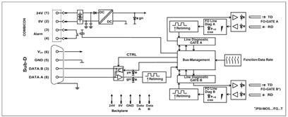- Высококачественная гальваническая развязка между всеми интерфейсами (PROFIBUS // оптические порты // питание // соединитель, устанавливаемый на несущую рейку)