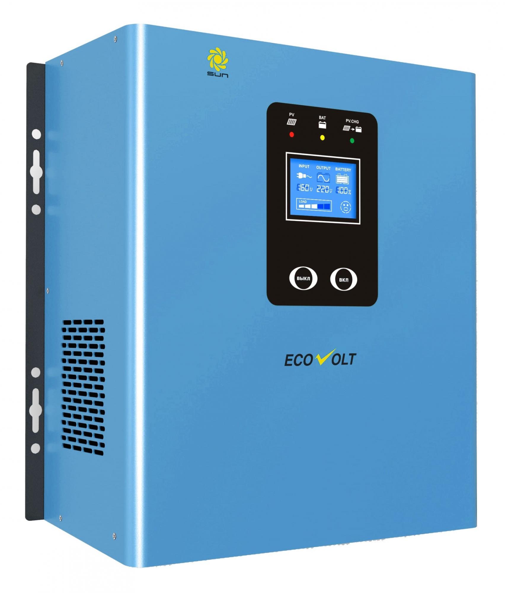 Гибридный инвертор Ecovolt SUN 1224 сочетает в себе технические свойства двух приборов - обычного источника бесперебойного питания и солнечного инвертора.