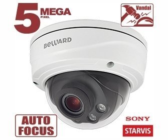 Купольная IP 5 Мп, 1/2.9'' КМОП Sony Starvis, 0.006 лк (день)/0.003лк (ночь), 2xWDR до 120 дБ, 3 потока H.265/Н.264 HP/MP/BP, MJPEG, 30к/с, 2560x1920, моторизированный объектив 2.8-11мм, автофокус, АРД, цифр. стабилизация изображения, электромеханический ИК-фильтр, ИК-подсветка (до 50м), 12В/PoE, microSDXC (до 128 ГБ), IP67, от -40 до +50°С, внутрикорпусное подключение, встроенная видеоаналитика